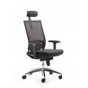 Hoher Netzrücken und Stoffpolstersitz, Schwarz, 4-fach arretierbare Rückenneigung, höhenverstellbare Lendenwirbelstütze, höhenverstellbar Kunststoffarmlehnen Schwarz, Synchronmechanik mit selbstregulierender Gewichtseinstellung, Kunststoff-Fußkreuz Schwarz, stufenlose Höhenverstellung durch Gasfeder, inkl. großen Rollen für Teppichböden, getestet nach...