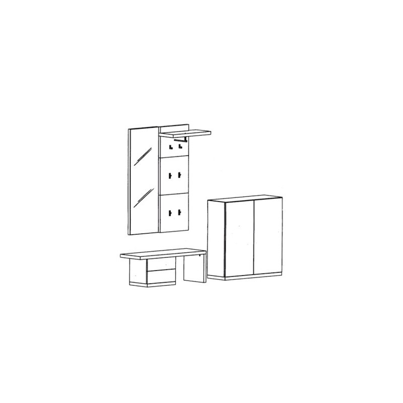 1x Paneel mit 1 Garderobenstange und 2 Mantelhacken