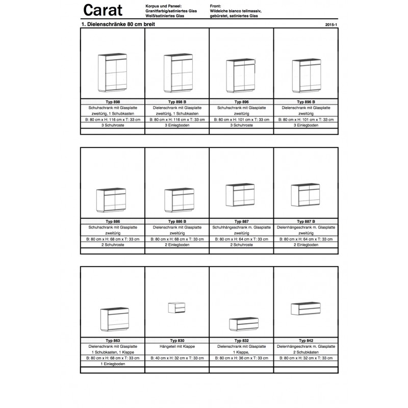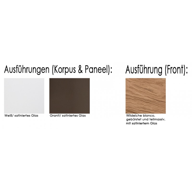 - Wildeiche teilmassiv bianco, gebürstet, satiniertes Glas korpusfarbig